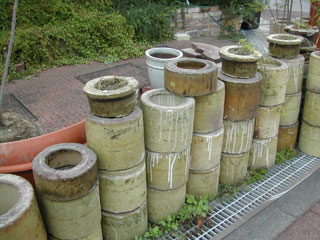 坪庭におくモダンなつぼやおかしのコロンのような陶管をかいこみました。