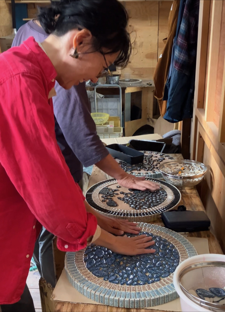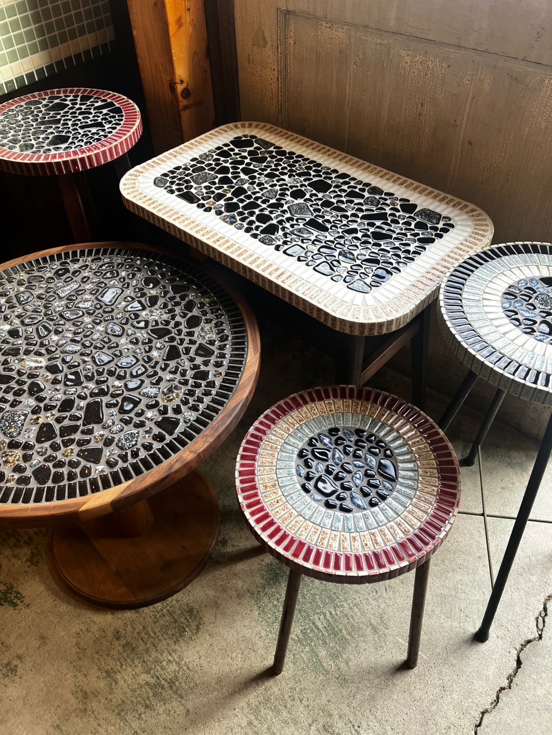 Rebon tileさんにはこの玉石の種類が本当にたくさんあって、その玉石をいろいろ組み合わせて日々タイルテーブルを製作中です!!!組み合わせは無限なのですが、色や柄のバランスなどほんとうに難しい。。。けど楽しい!こんな貴重なタイルで家具を作れる日がくるなんて。