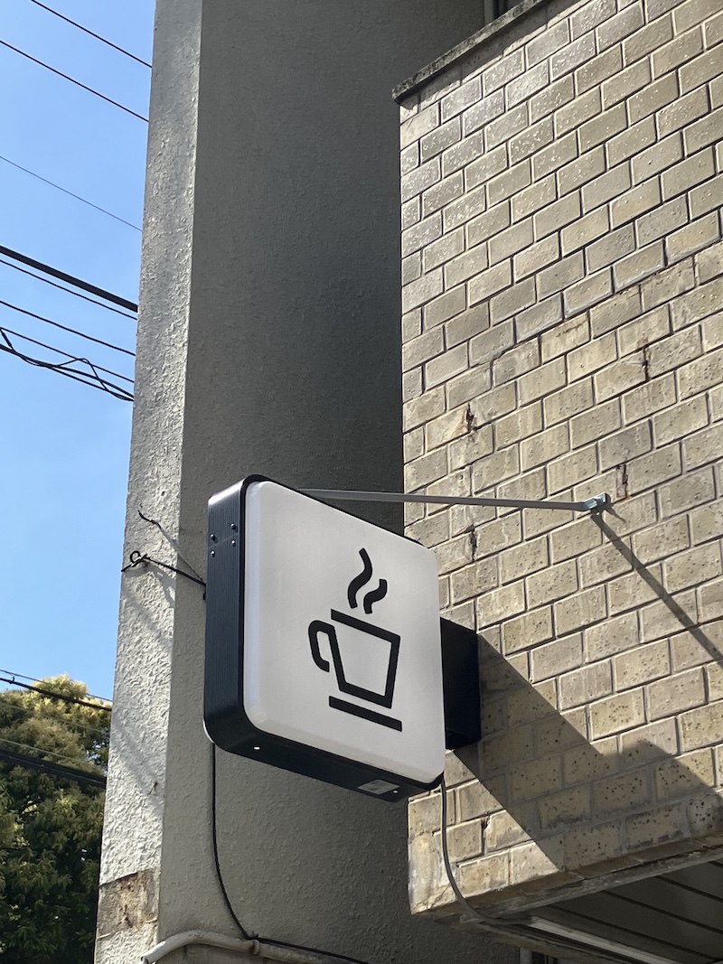 コーヒー印の内照看板とアイアン切り文字サイン yuge at 浄心