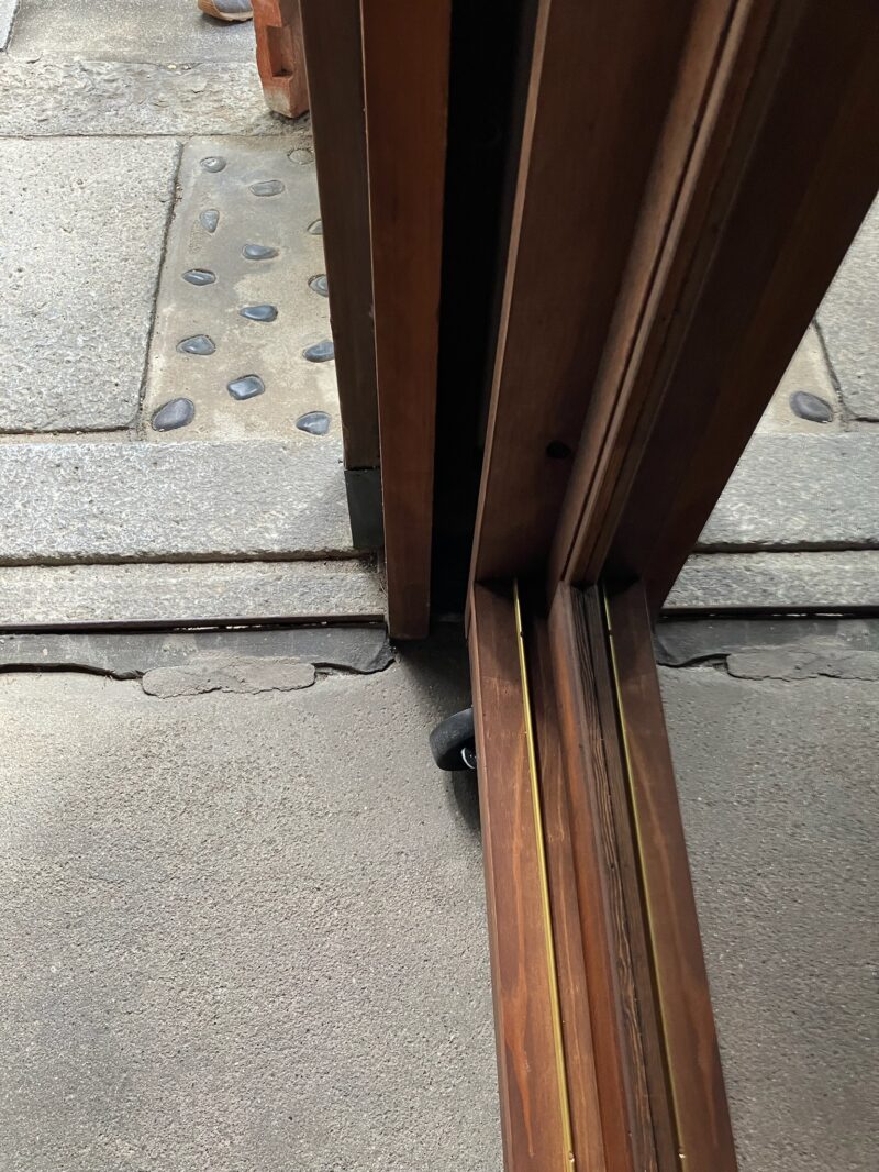 引き戸のレールは昔ながらの真鍮の甲丸レール。ちょっとしたことだけど、取手やレール、金物など昔ながらのものを使うことでまたより新しさはなくなるのです。