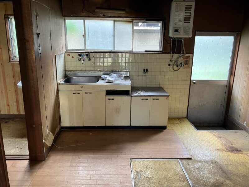 タイルの壁をあえて無くす選択を置き場所はもともとキッチンがあった場所。工事前のキッチンはどこにでもあるこんな感じでした。